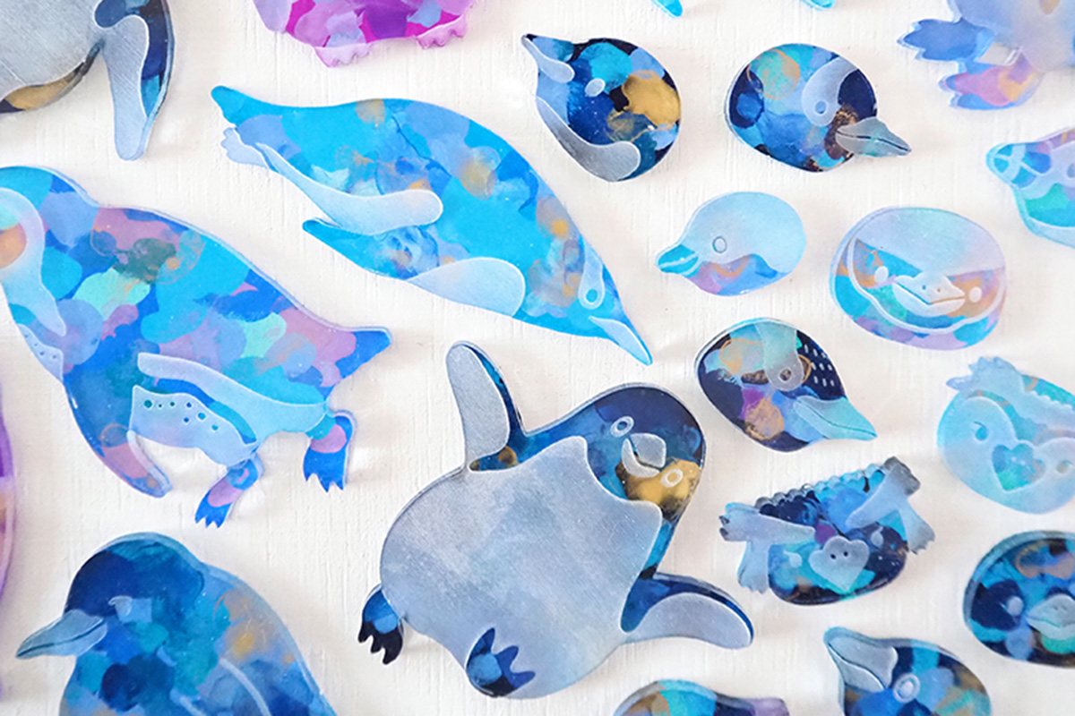 手描きで1つ1つ仕上げているアクセサリーと、オリジナル柄の雑貨 (マスキングテープ、メガネ拭き、クリアファイル、ステッカーなど)を販売します。
