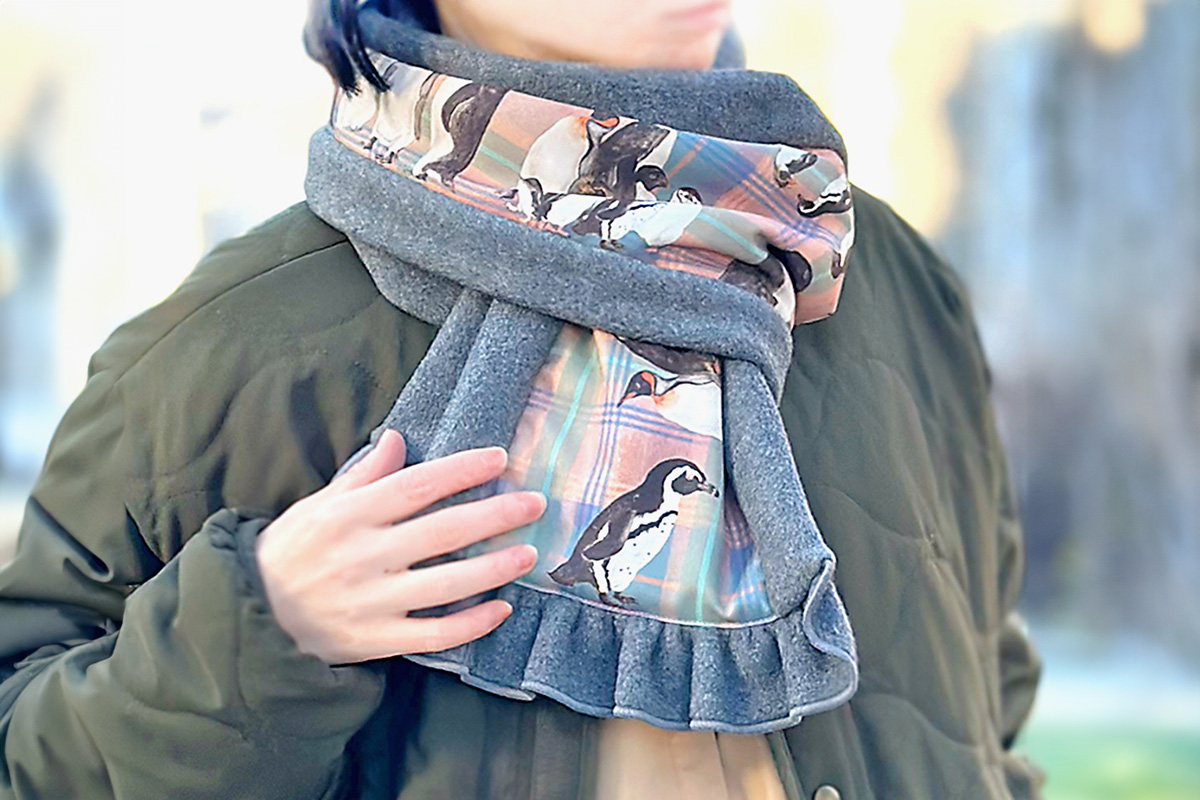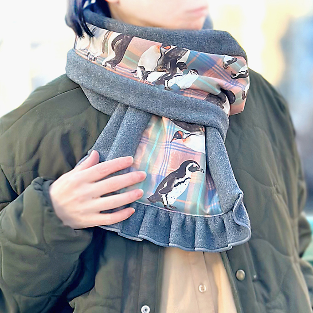 新作のマフラーをはじめ、こだわりの両面プリントハンカチーフ、定番のコンビニバッグやストラップなどをご用意。再生ポリエステルを使用していたり、撥水性があったり、お家でお洗濯できたりと、機能性も兼ね備えたアイテムたちです。
