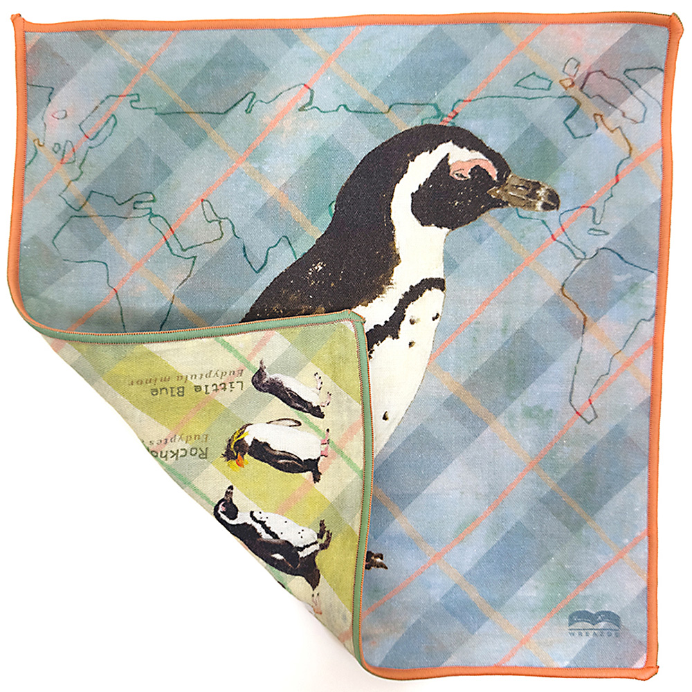 絶滅危惧種の生物をモチーフに、オリジナルイラストのテキスタイルアイテムを制作。 ペンギン目ではケープペンギンを中心に展開しています。 デザインやパターンもオリジナル。作図に合わせた絵の配置や機能的なデザインにもこだわり、取り扱いしやすい素材を採用しています。