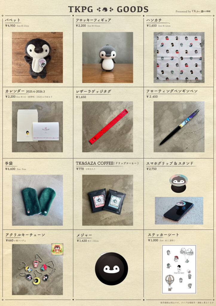 普段使いにしっくり馴染む雑貨屋やフィギュア、TKがSAZA COFFEEさんとコラボレーションして作ったオリジナルドリップコーヒーなどもあります。
