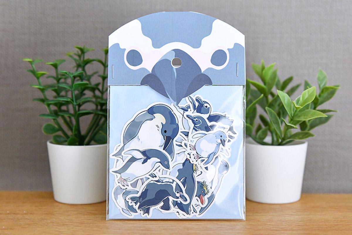 ペンギンたちが気持ち良さそうに泳いでるイラストのポップアップカードは立体に広げて飾ることができます。フレークシールは世界に生息する18種のペンギンたちが入っているのがおすすめポイントです。シンプルデザインの可愛いポストカードもご用意しております。 WEBサイト: