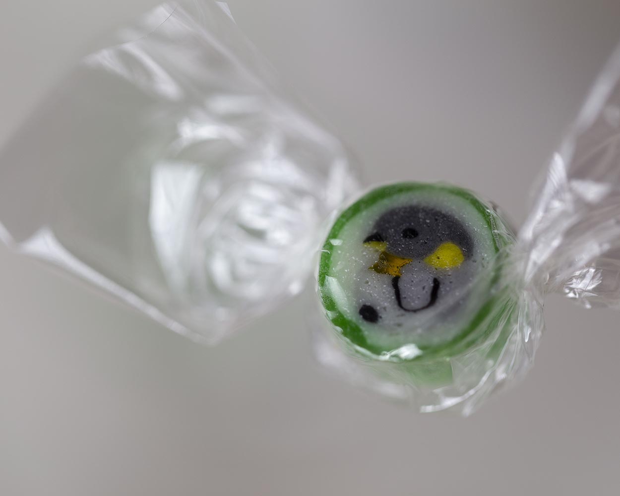 コウテイペンギンのキャンディー 光にかざすと透ける首元の黄色