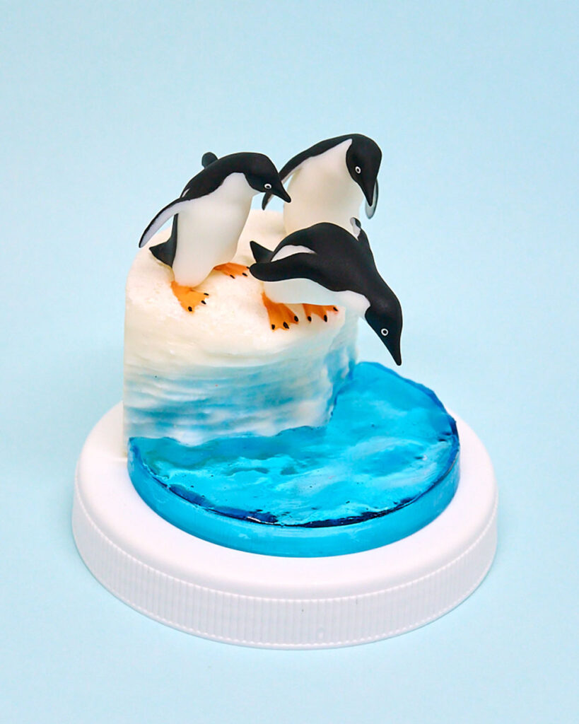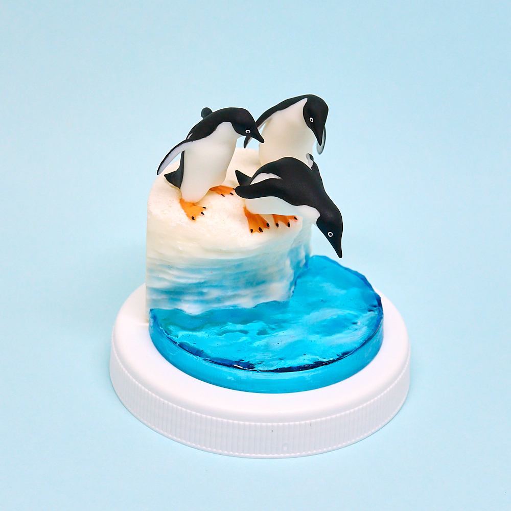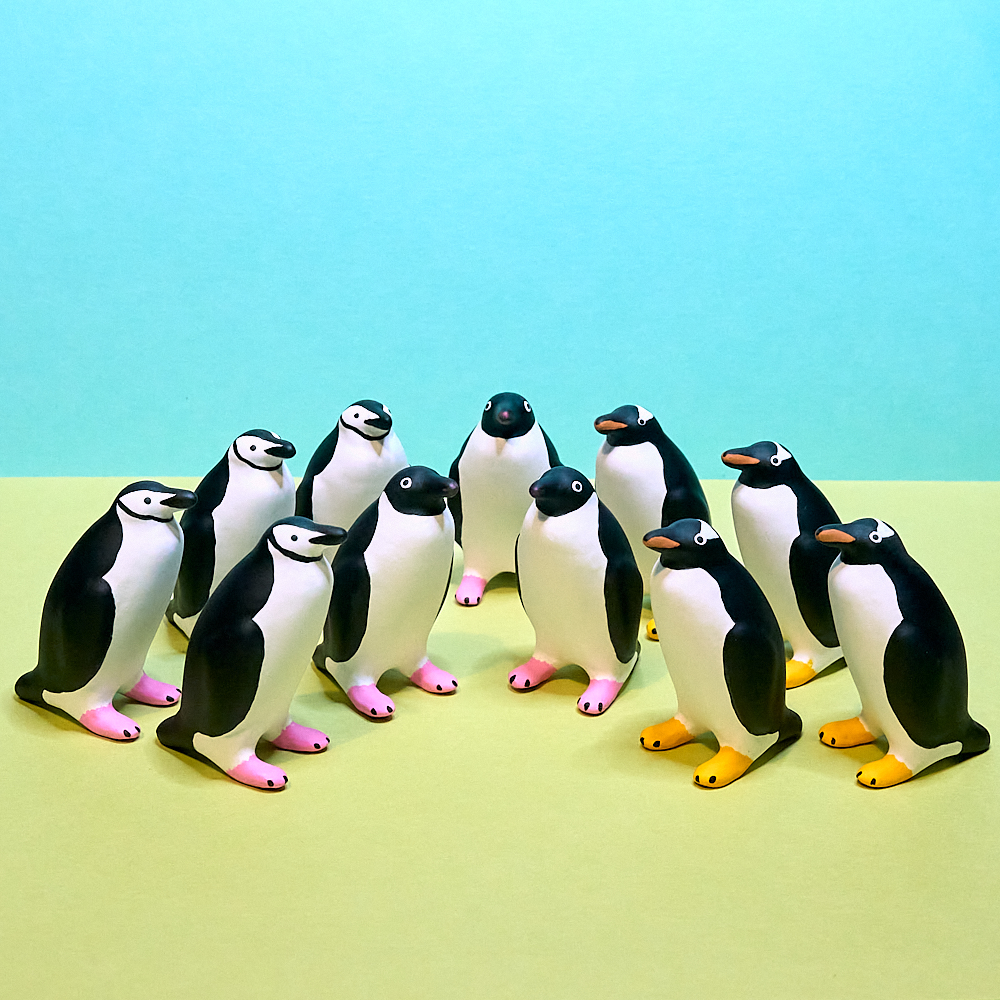 手乗りサイズのフィギュアと、ペンギンの世界をジオラマ風に表現した卓上タイプを出品します。一部のヒナを含めた11種類のペンギンさんを予定しています。お気に入りの子が見つかりますように。