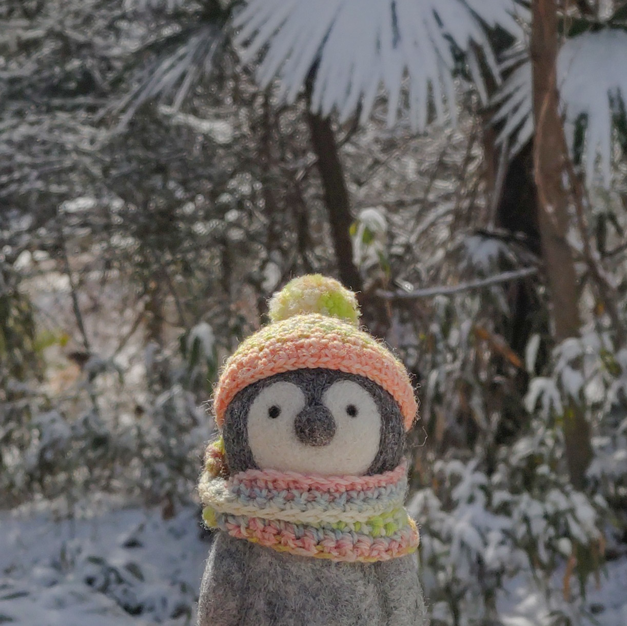帽子をかぶったコウテイペンギンのヒナ