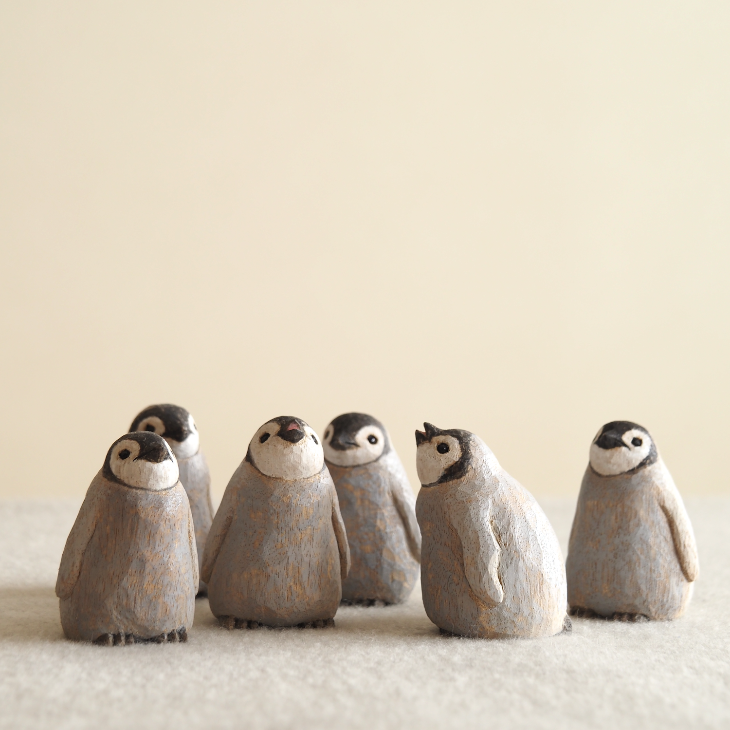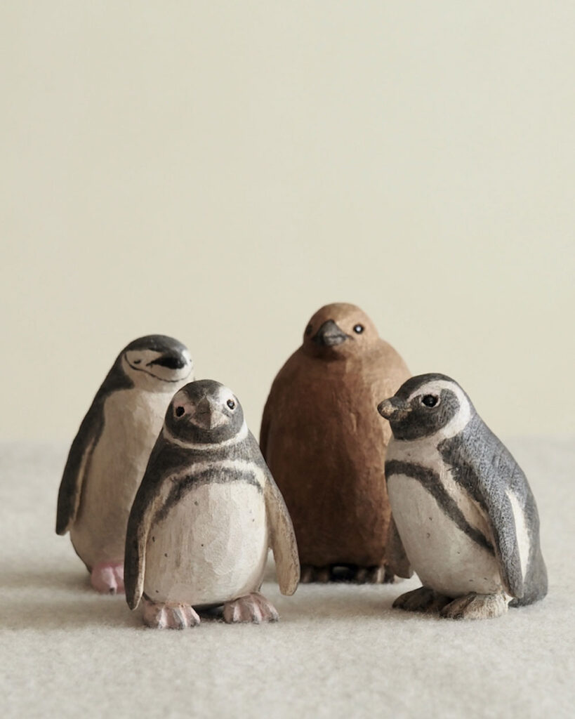 動物園・水族館で出会ったペンギン達をモデルに、木彫りでてのひらサイズのペンギンを作っています。