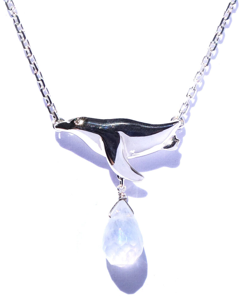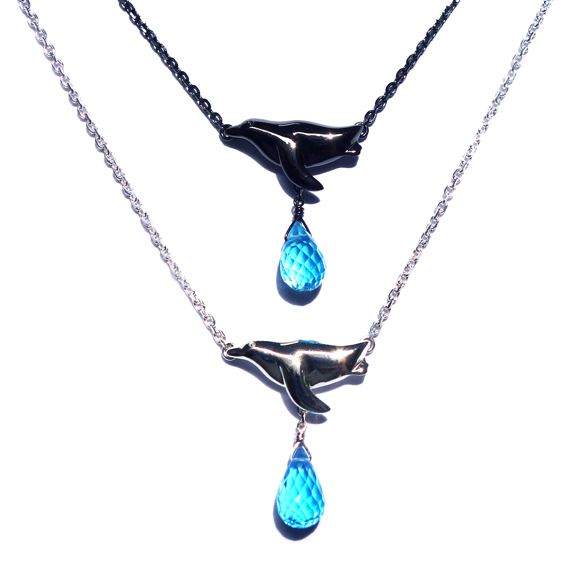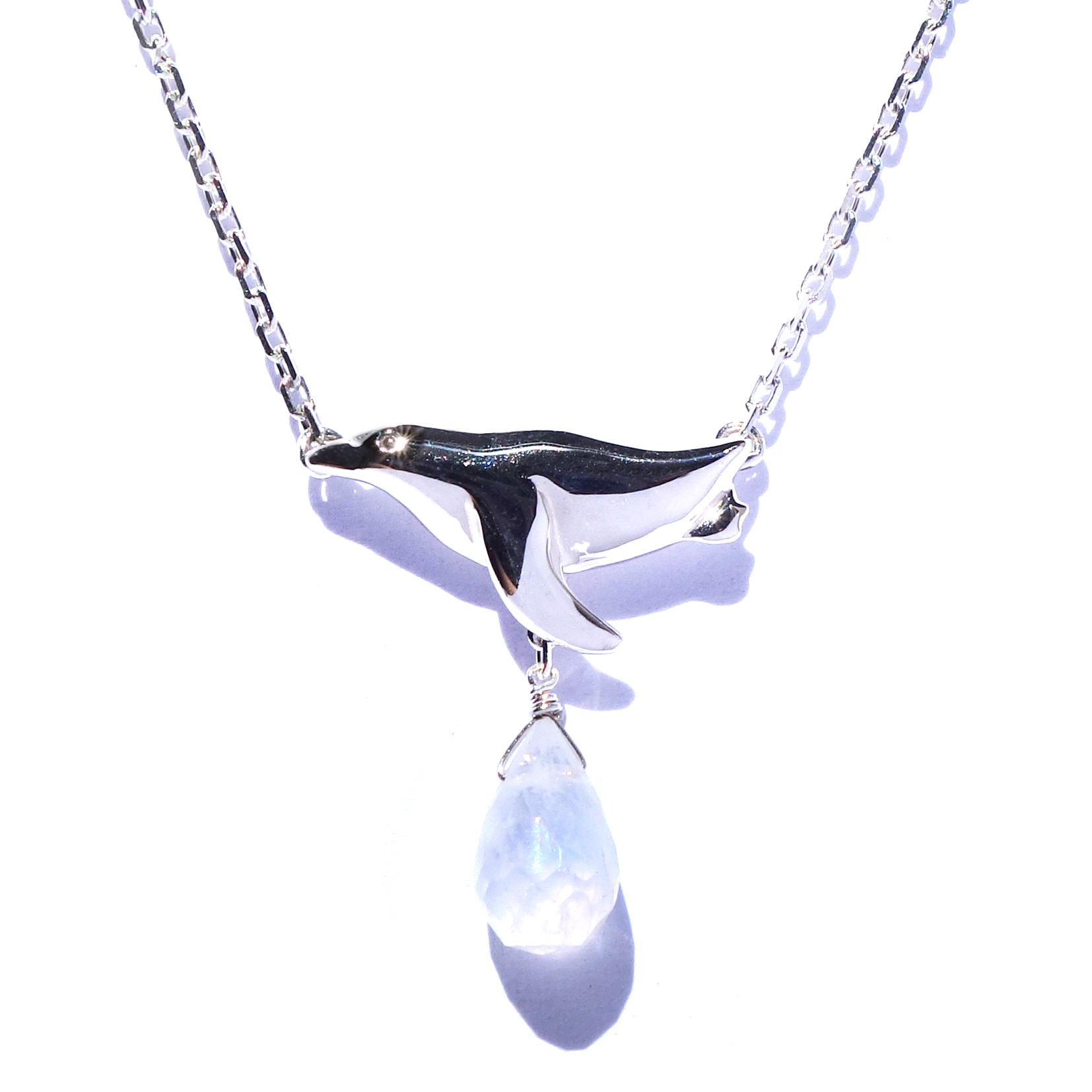 ダイビングペンギンのネックレスです。ブルートパーズとムーンストーンでご用意しております。チェーンの長さは40∼45㎝調節可能式です。チェーンの長さは40∼45㎝調節可能式です。