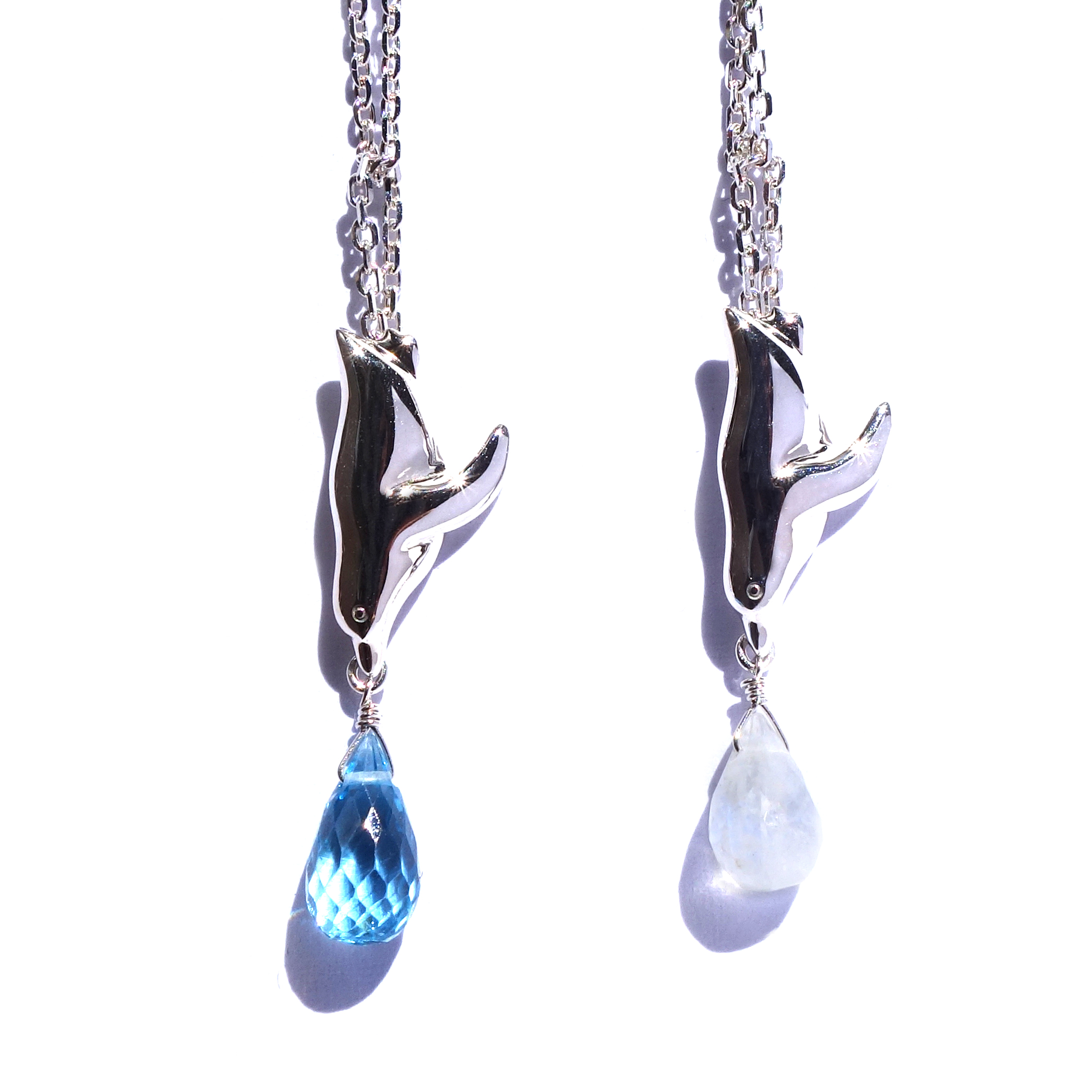 ダイビングペンギンのチャーム式ネックレスです。ブルートパーズとムーンストーンでご用意しております。チェーンの長さは40∼45㎝調節可能式です。