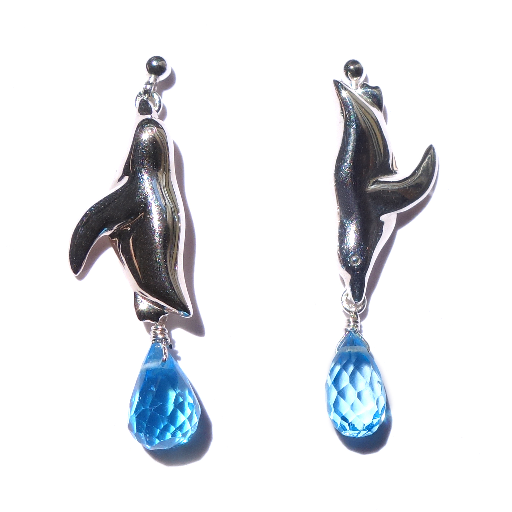 ブルトパ・銀のダイビングペンギンピアス(上下向き・2羽)