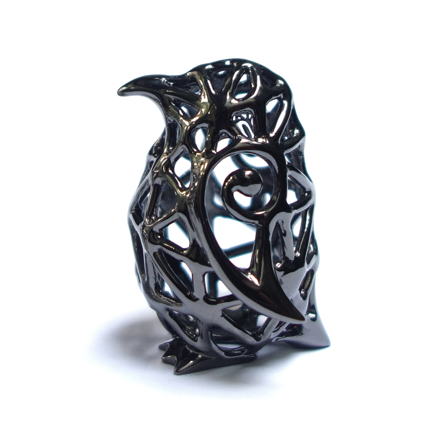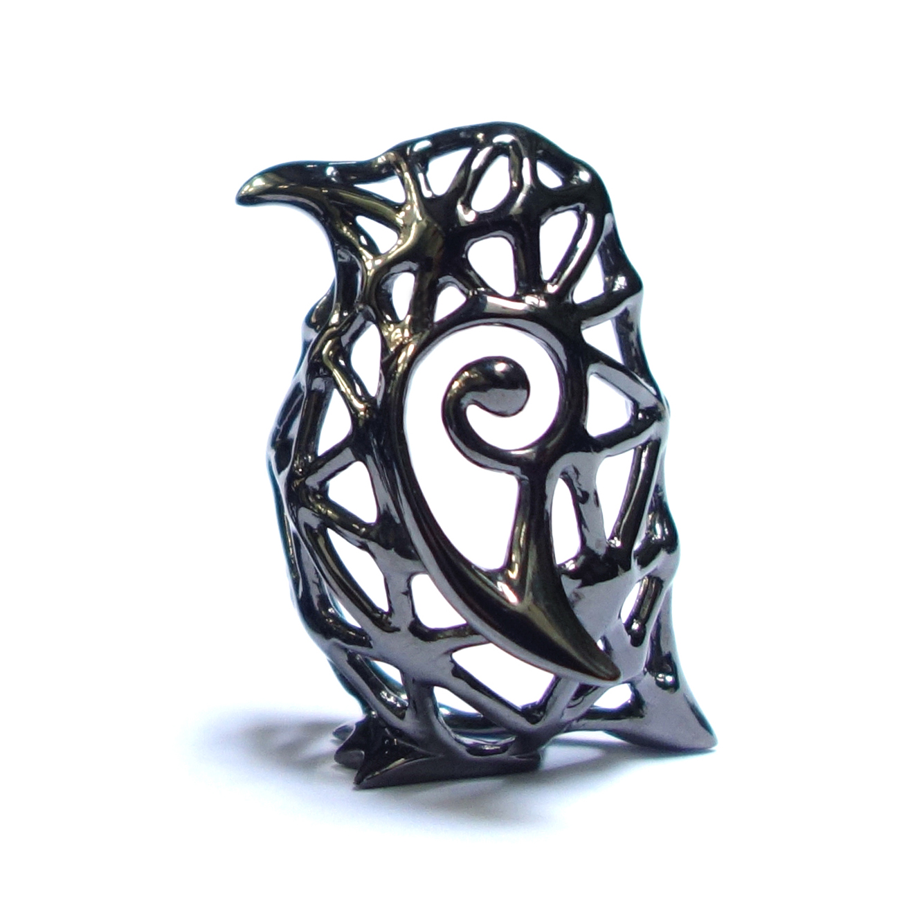 銀と黒の立体あみペンギンのオブジェです。黒・銀からお選び頂けます。