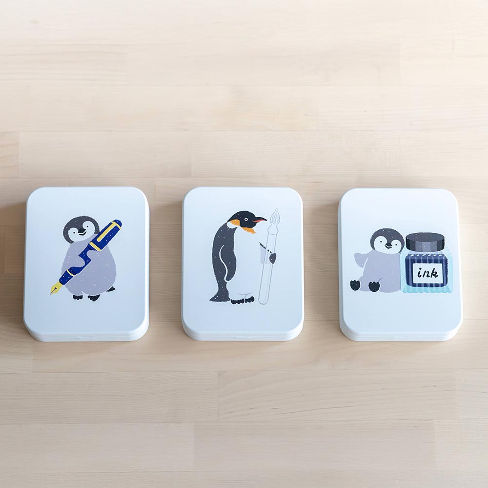 ペンギン×文具のフラット缶ケース