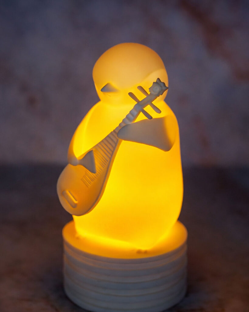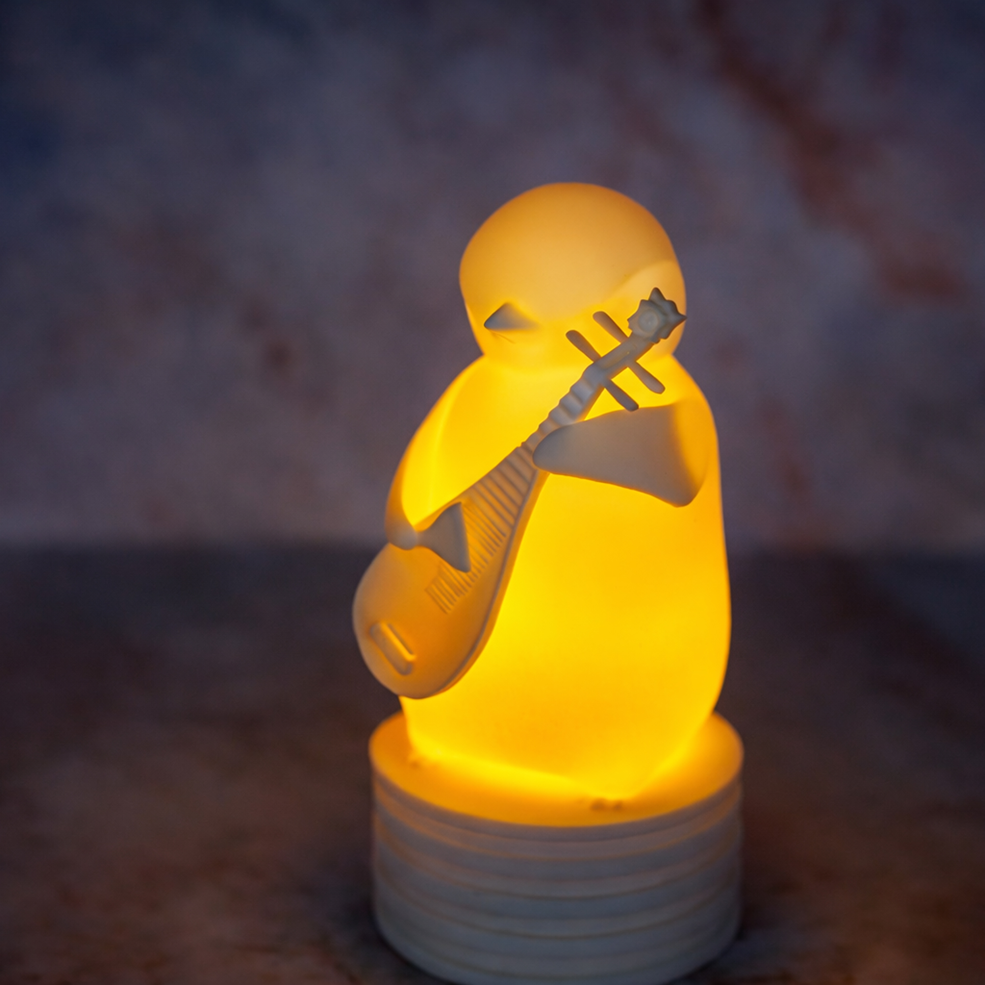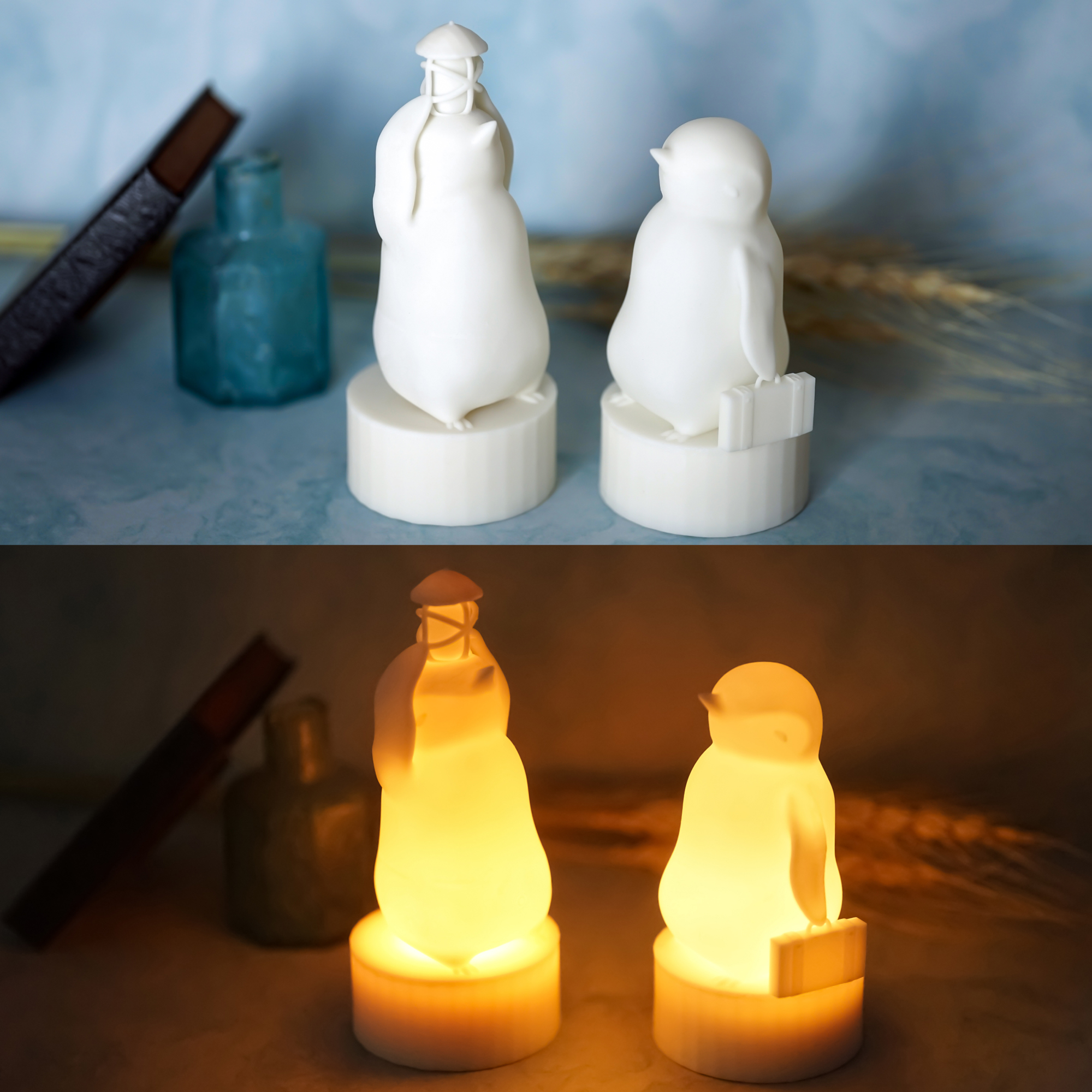 南極からやってきて世界を旅するコウテイペンギンのヒナが、 あなたの夢の旅路を照らすランプ・シリーズ。 さまざまな旅道具や、旅先の土地にちなんだものと一緒にいるペンギンたちです。 3Dプリンターによる樹脂製カバー+LEDキャンドル付き。